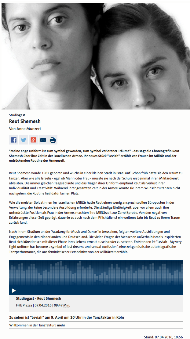 - ColoRadio Freies Radio Dresden, Beitrag zu HELLERAUs Portrait: die Choreografin Reut Shemesh (October 2021)